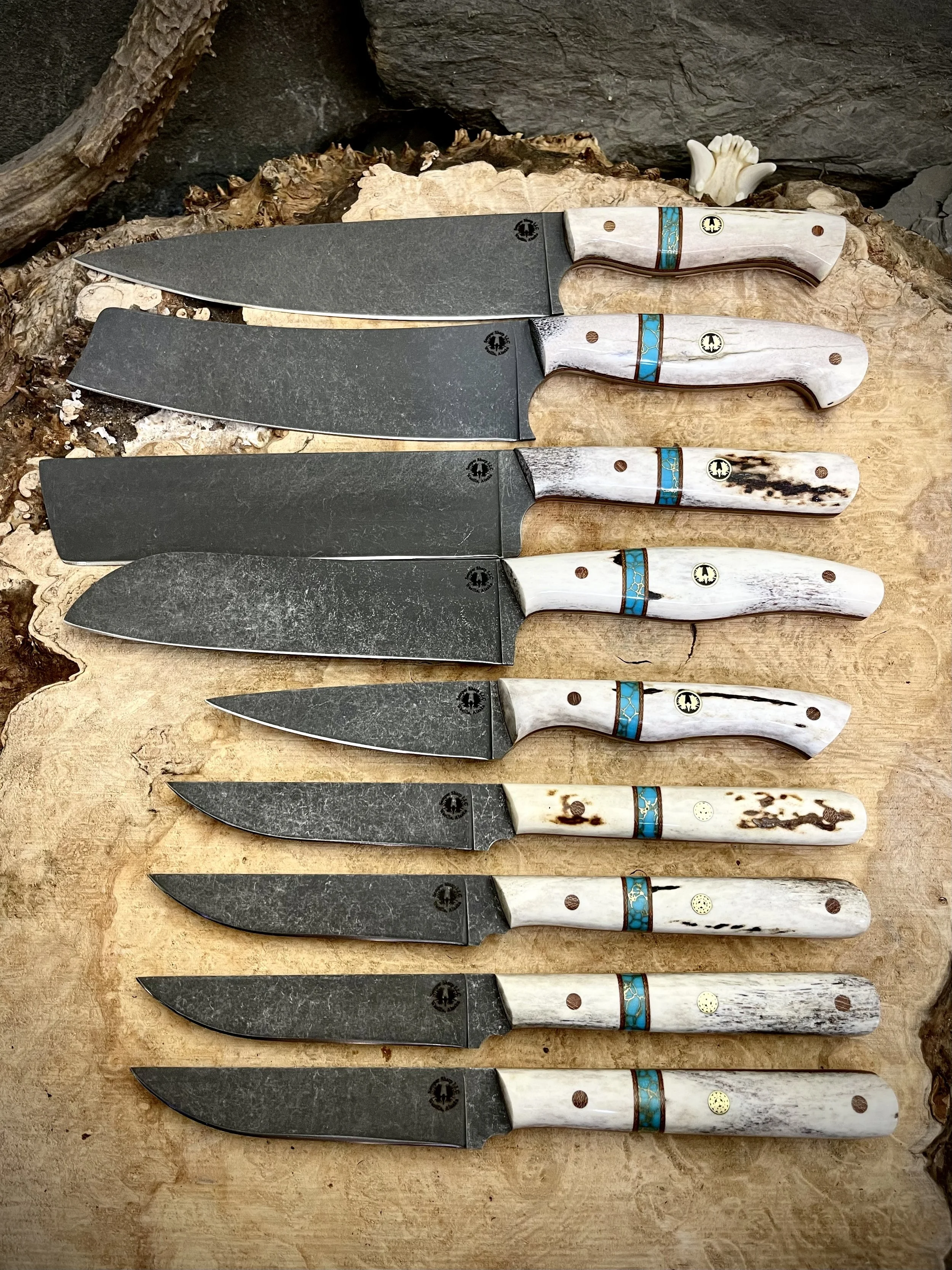 We custom make kitchen sets. We can add any knives you dream up in the mix. There is no set too big or too small!